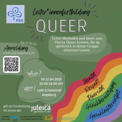 Die Teilnahme ist kostenlos, die Plätze sind jedoch begrenzt. Melde dich bis zum 17.03.25 unter www.psg-augsburg.de an. Wir freuen uns auf dich und darauf, gemeinsam neue Wege für eine diversitätsbewusste und empowernde Gruppenarbeit zu entdecken!